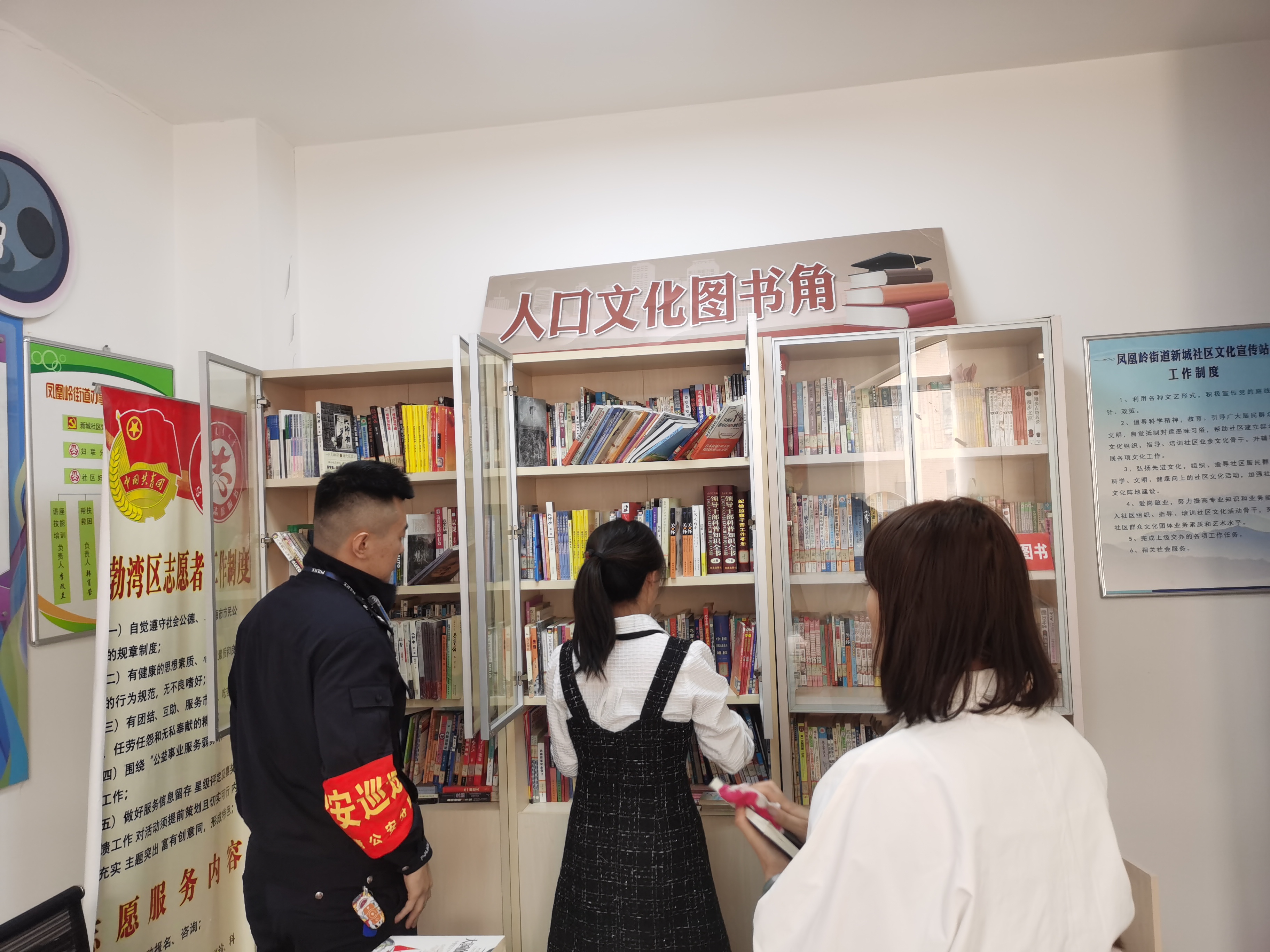 为强化社区文化环境整治,近日,新城社区工作人员和驻派警员一起开展了“扫黄打非”检查 严把图书质量关社区图书室自查活动。