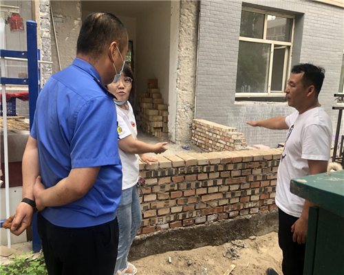 最后,新城社区工作人员与综合执法又来到蒙西A区进行沟通劝说,蒙西A区住户正在进行房屋小院扩建,在综合执法耐心劝阻下,现场停工,等待住户返回做进一步沟通解决。