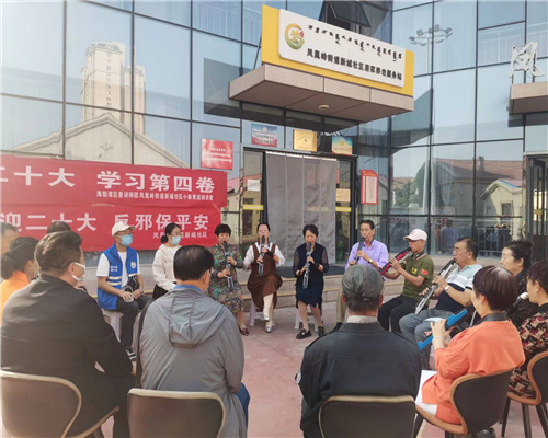 启动仪式上,以“喜迎二十大 学习第四卷”为主题,新城社区副书记说明了成立“小板凳”流动讲堂的目的及意义,并就“小板凳”流动讲堂制度、计划进行了进一步说明,提议大家要一起努力做宣讲,寻找“草根”宣讲人,吸收进入“小板凳”流动讲堂,为迎接党的二十大胜利召开营造良好氛围。接着,新城社区副书记理论联系辖区凤凰小巷实际,开展学习了《习近平谈治国理政》第四卷新在何处、《习近平谈治国理政》第四卷重点学什么等内容,宏观讲解了《习近平谈治国理政》第四卷,接下来,乌海电吹管乐队的老师们带来了精彩的“红歌连奏”表演,使得共建活动现场十分活跃。